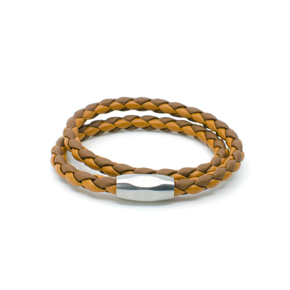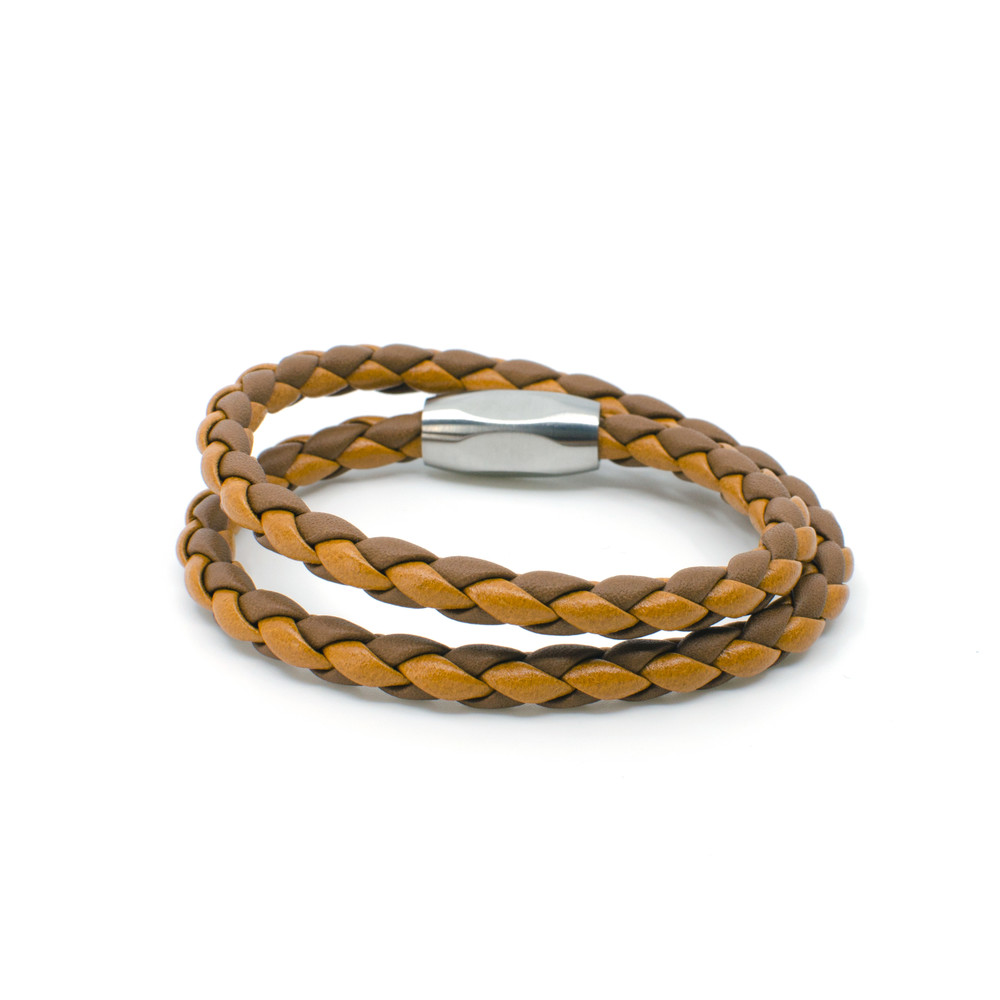 BRAIDED LEATHER DOUBLE-WRAP BRACELET 18' FW - RAW SIENNA