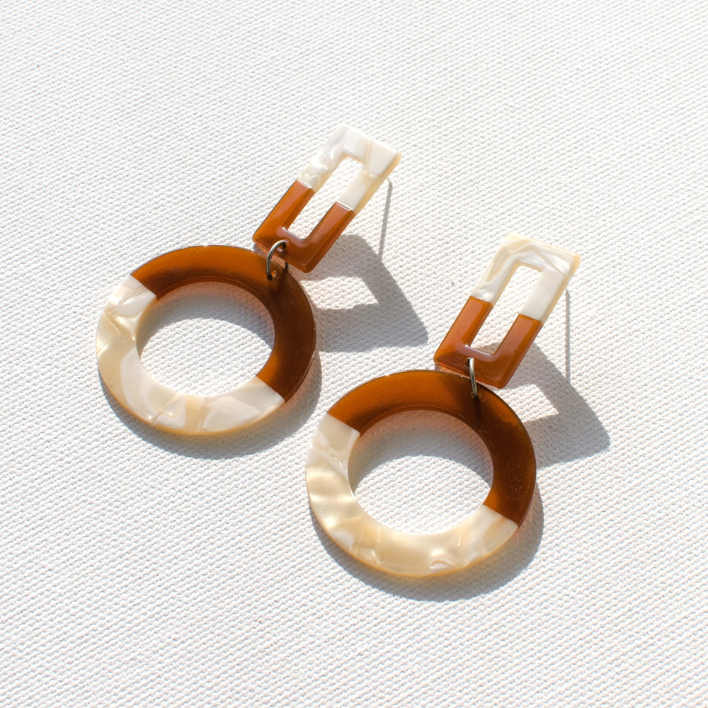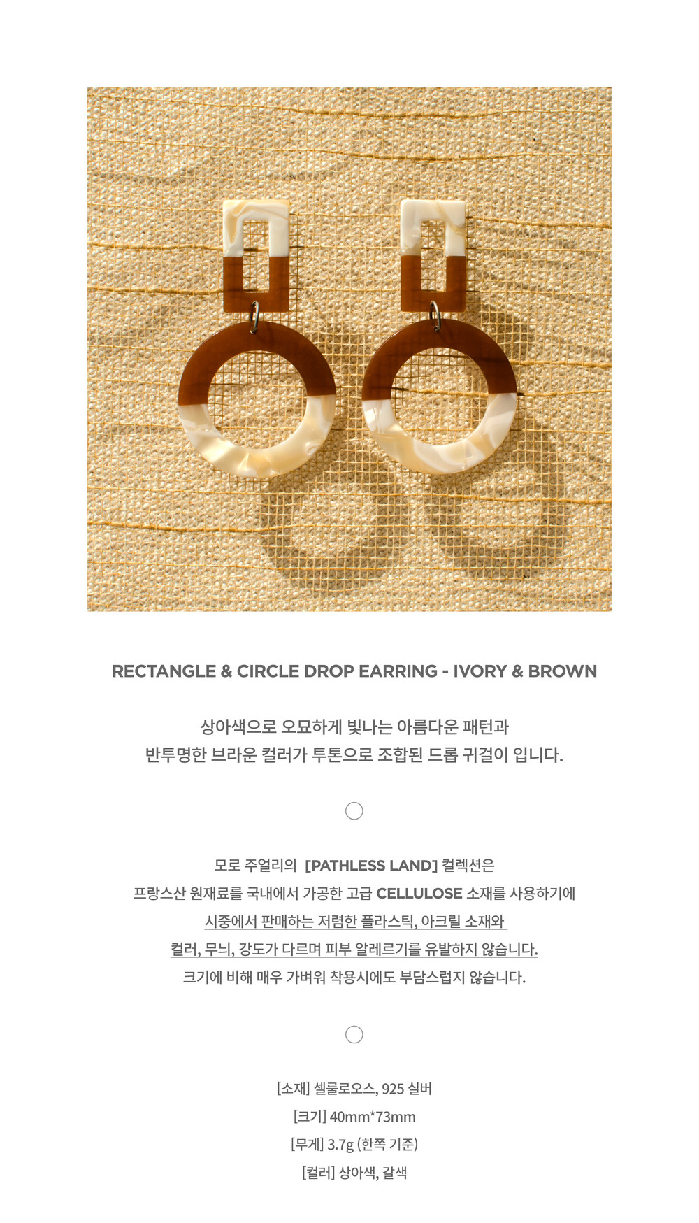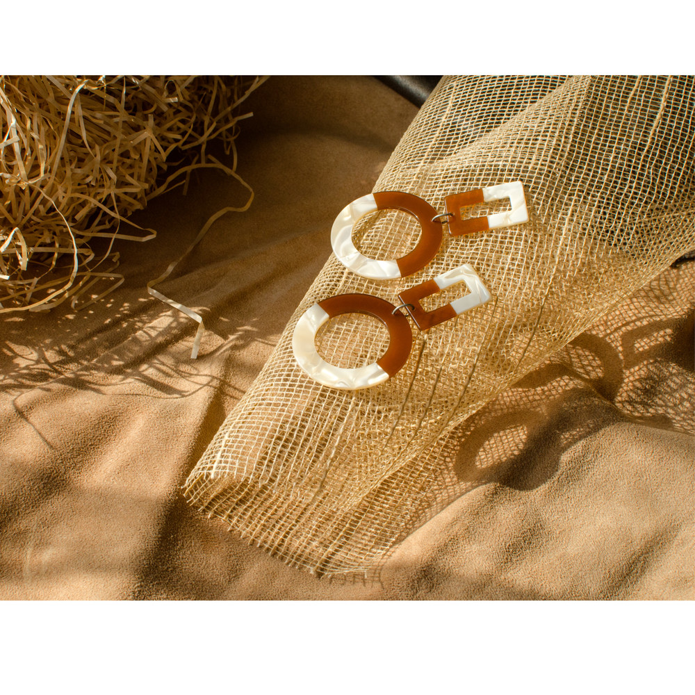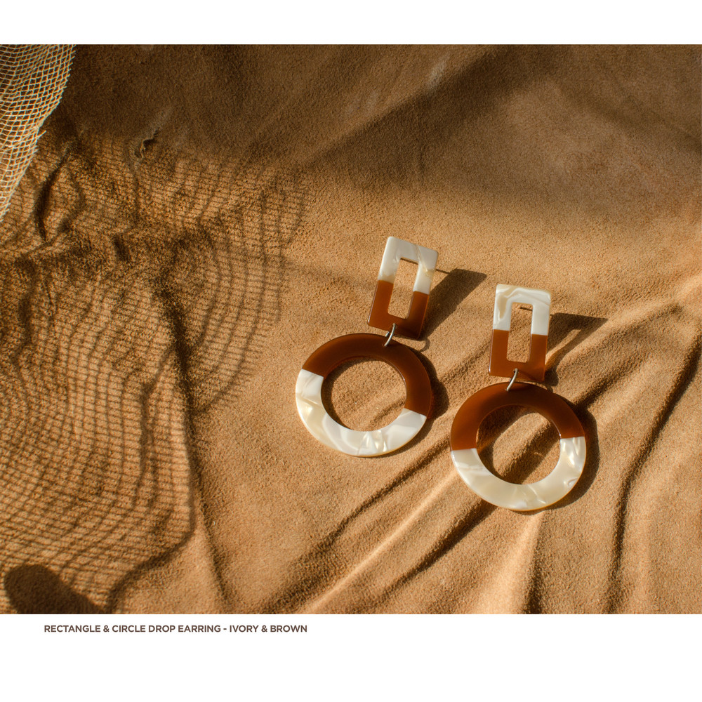 [PATHLESS LAND] RECTANGLE & CIRCLE DROP EARRING - IVORY & BROWN