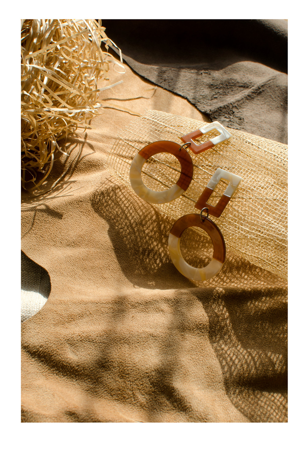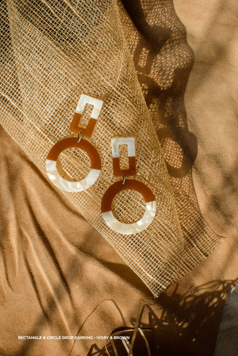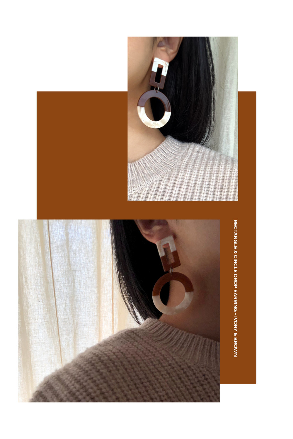 [PATHLESS LAND] RECTANGLE & CIRCLE DROP EARRING - IVORY & BROWN