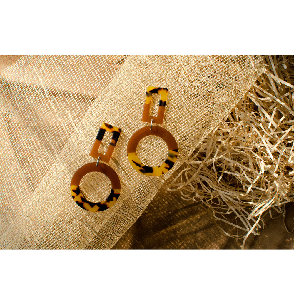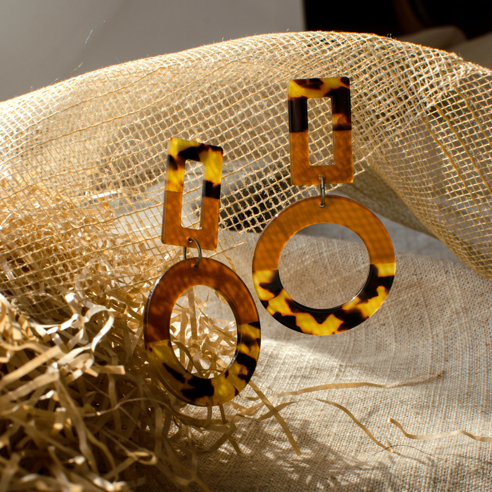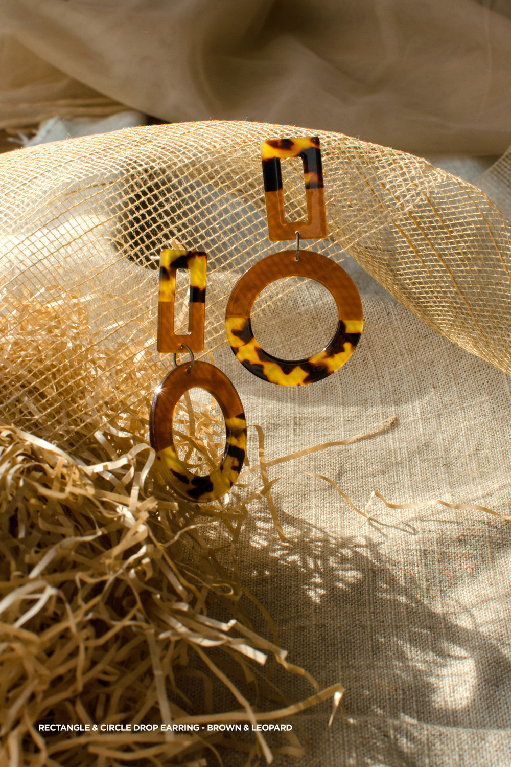 [PATHLESS LAND] RECTANGLE & CIRCLE DROP EARRING - BROWN & LEOPARD