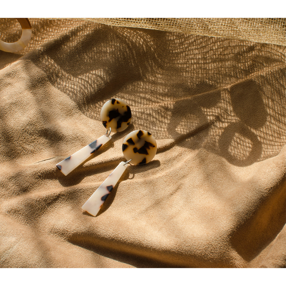 [PATHLESS LAND] CIRCLE & TRAPEZIUM DROP EARRING