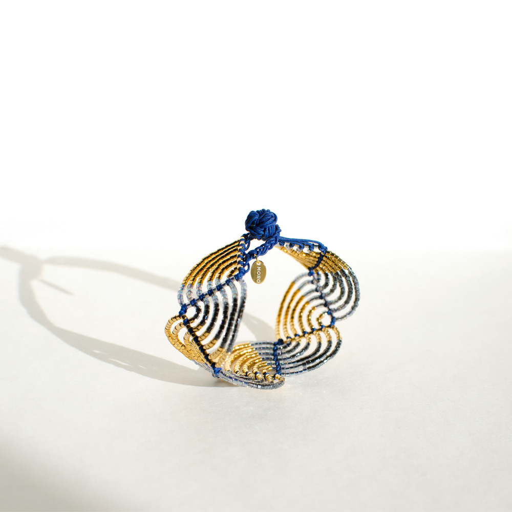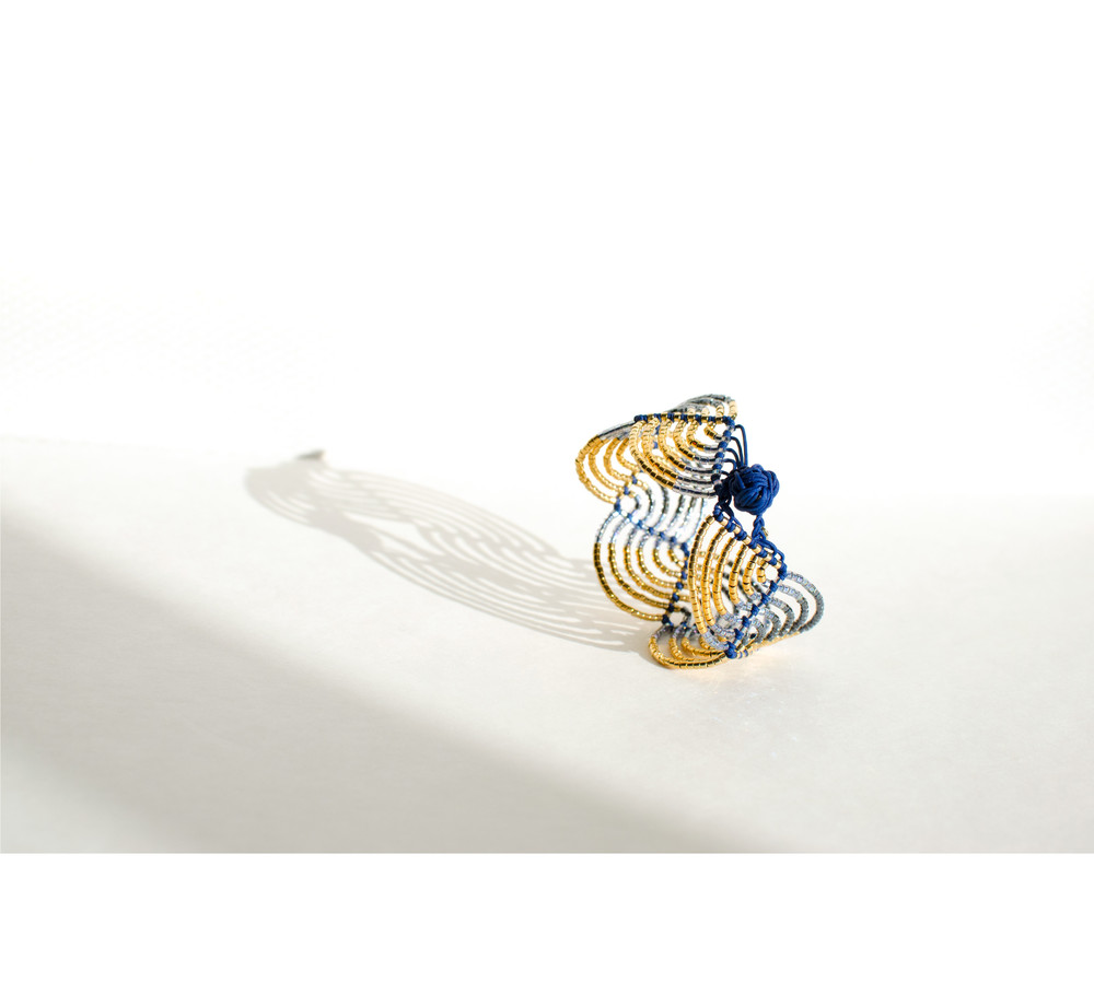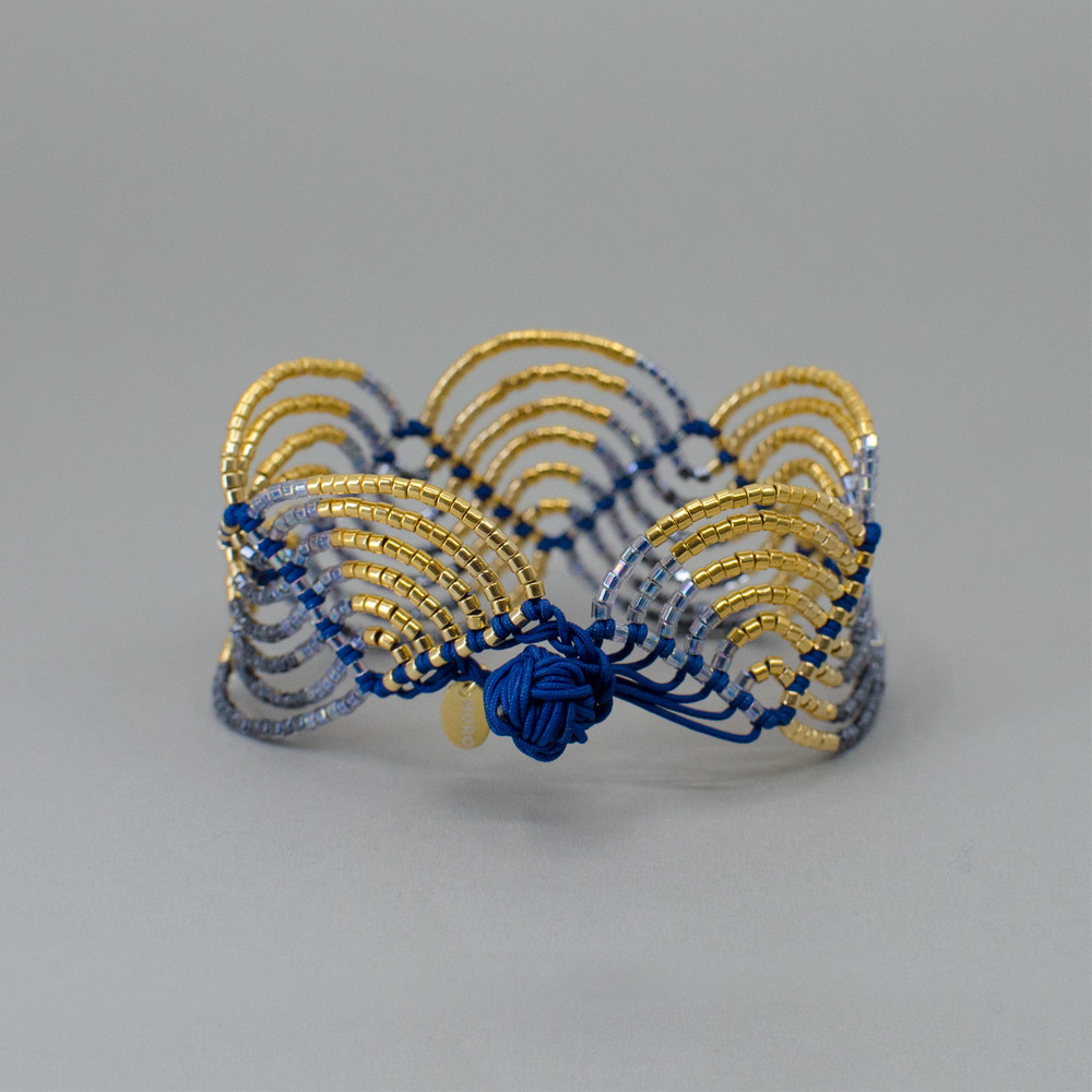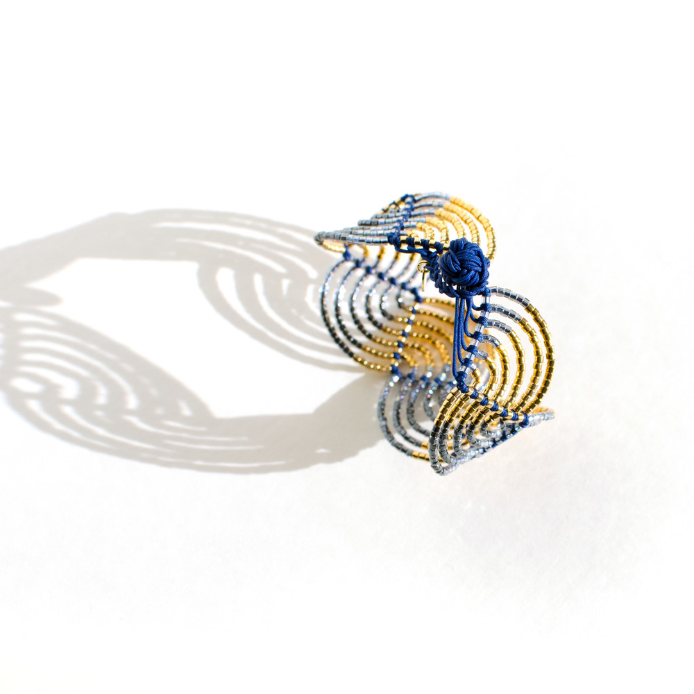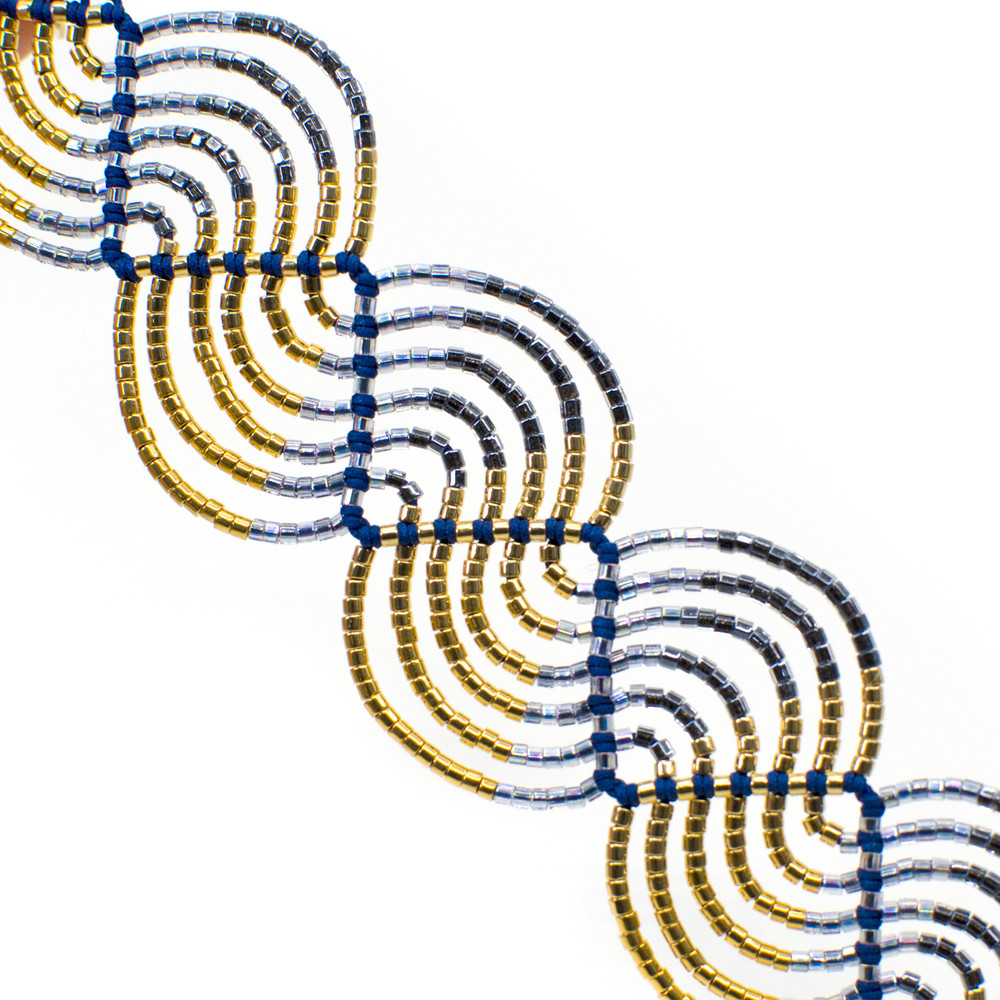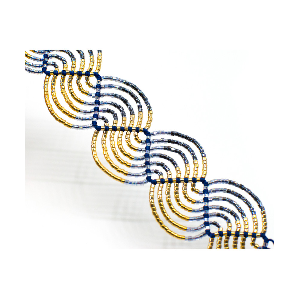 푸른빛과 골드빛의 4가지 컬러의 구슬이 사선 형태로 그라데이션 되어있는 디자인입니다.