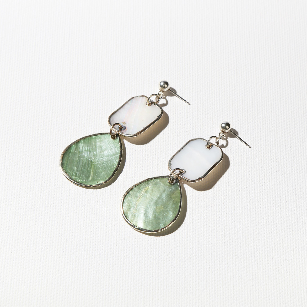 [M-O-P] WHITE RECTANGLE & WATER DROP SHAPE EARRING - ETON BLUE