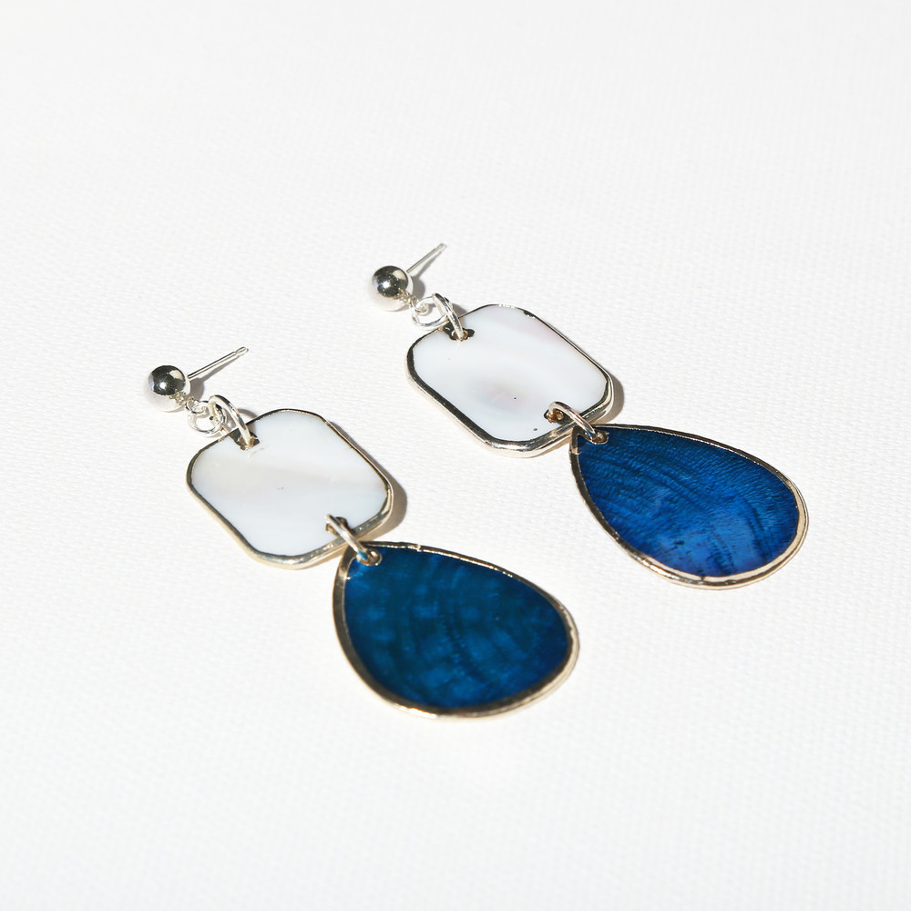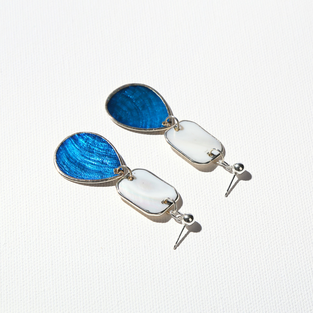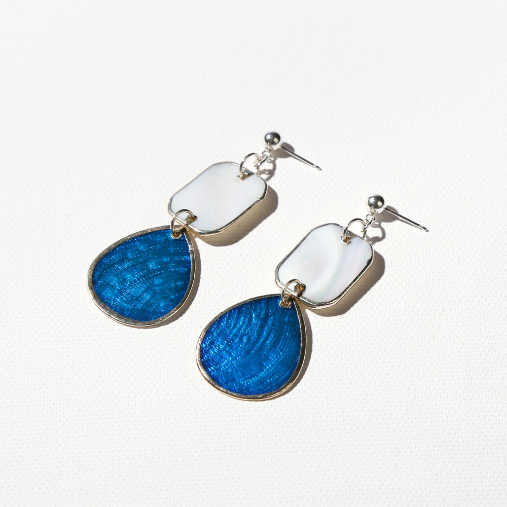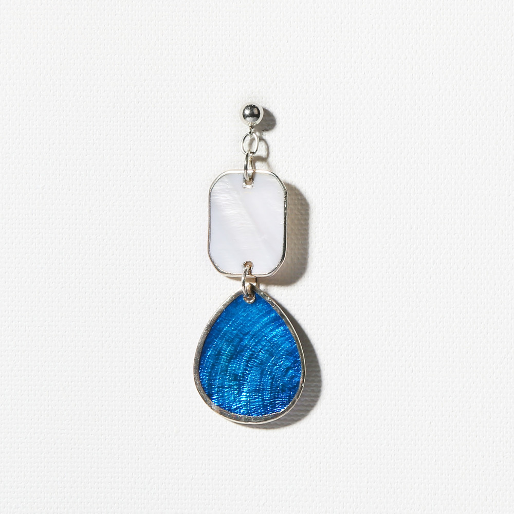 [M-O-P] WHITE RECTANGLE & WATER DROP SHAPE EARRING - CERULEAN BLUE