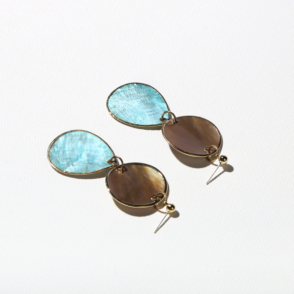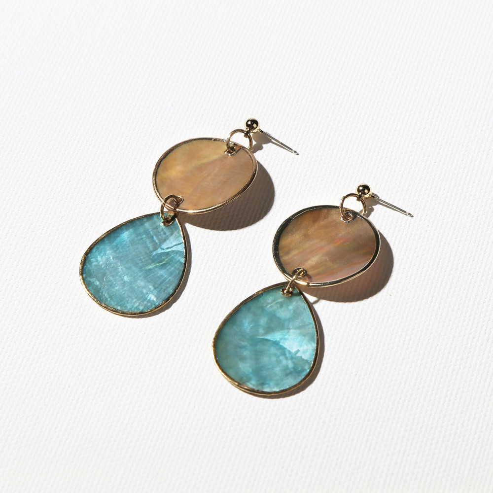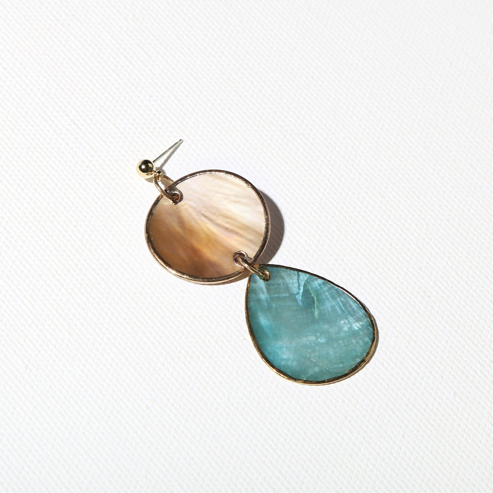 [M-O-P] CIRCLE & WATER DROP SHAPE EARRING - AQUA