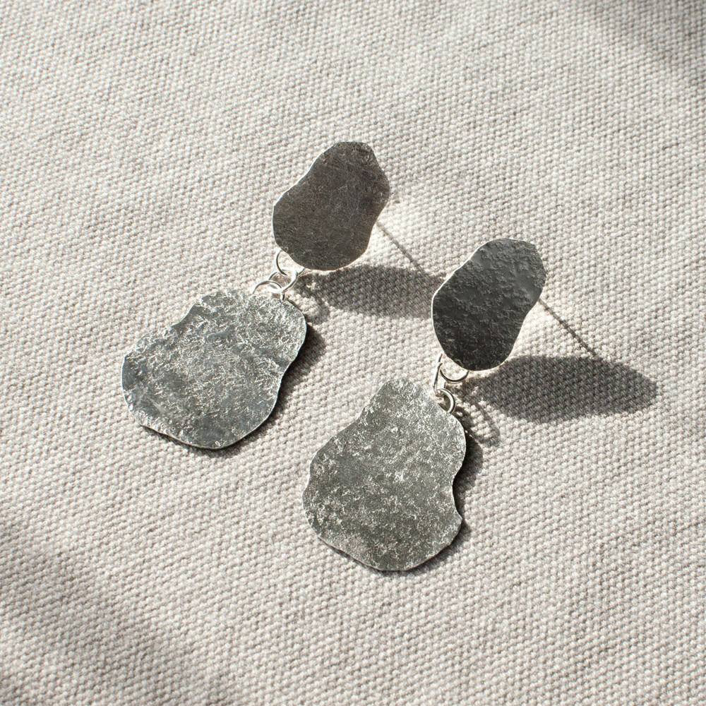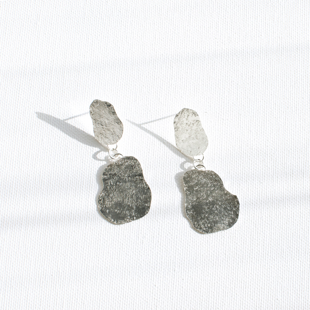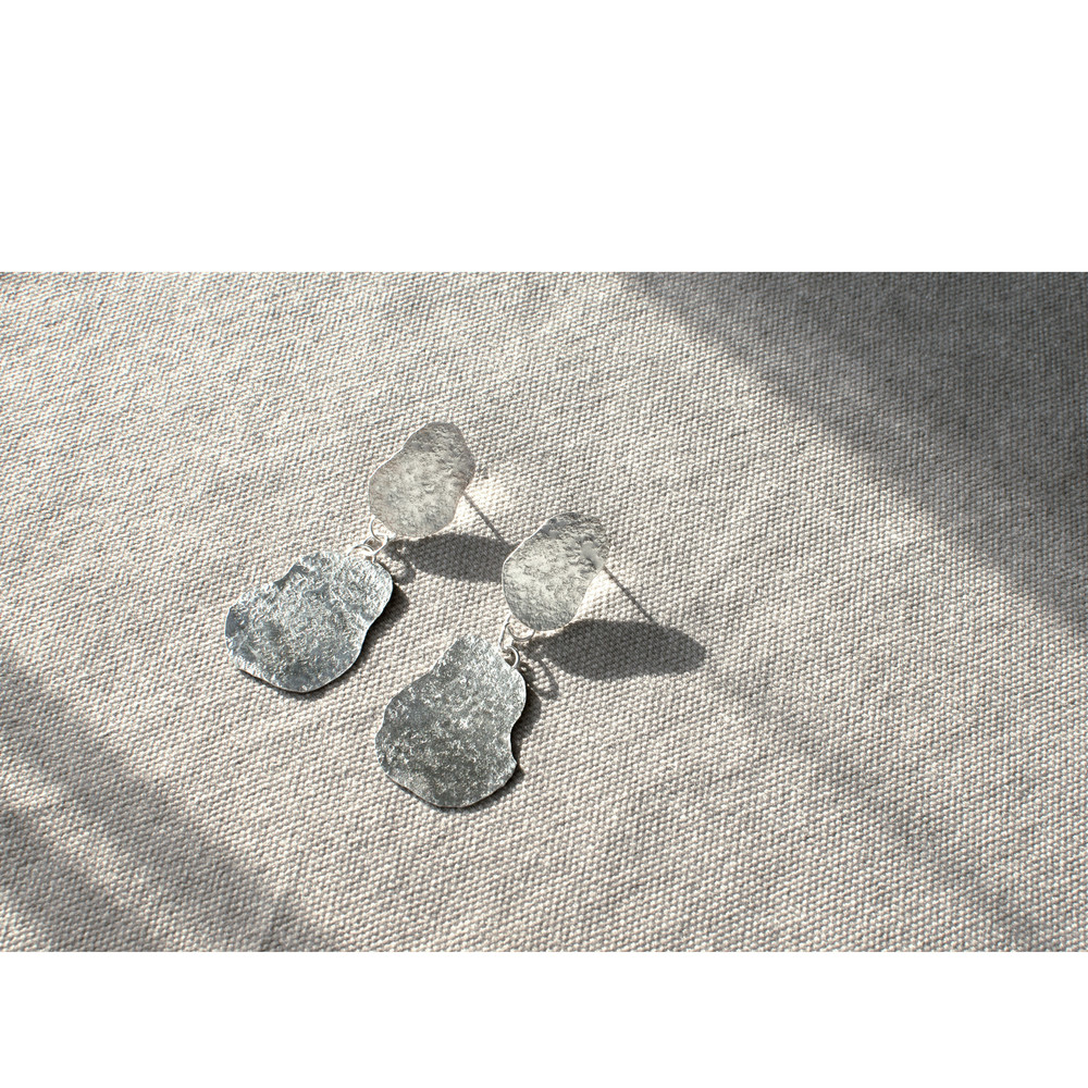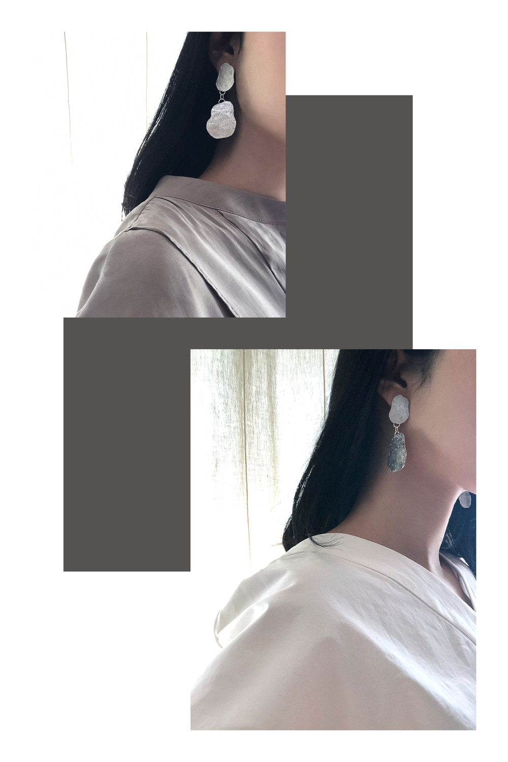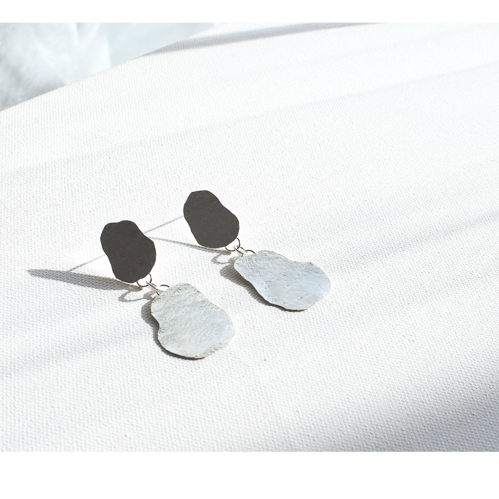 [SILVER & GOLD] FLAT IRREGULAR SHAPE DROP EARRING