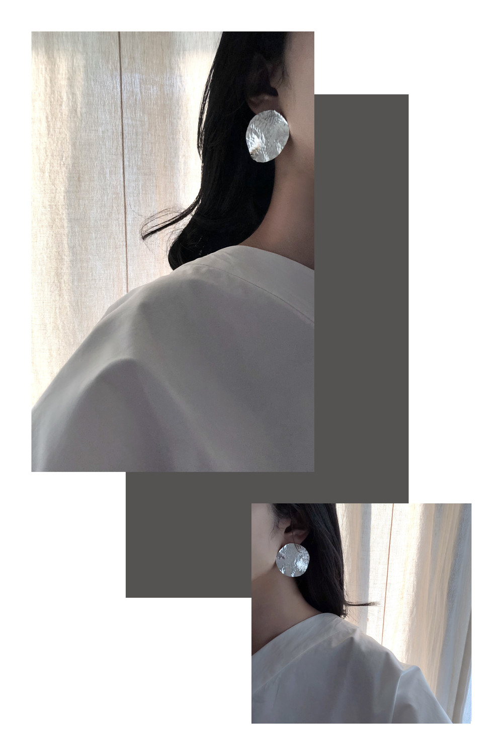 [SILVER & GOLD] FLAT CURVED CIRCLE EARRING
