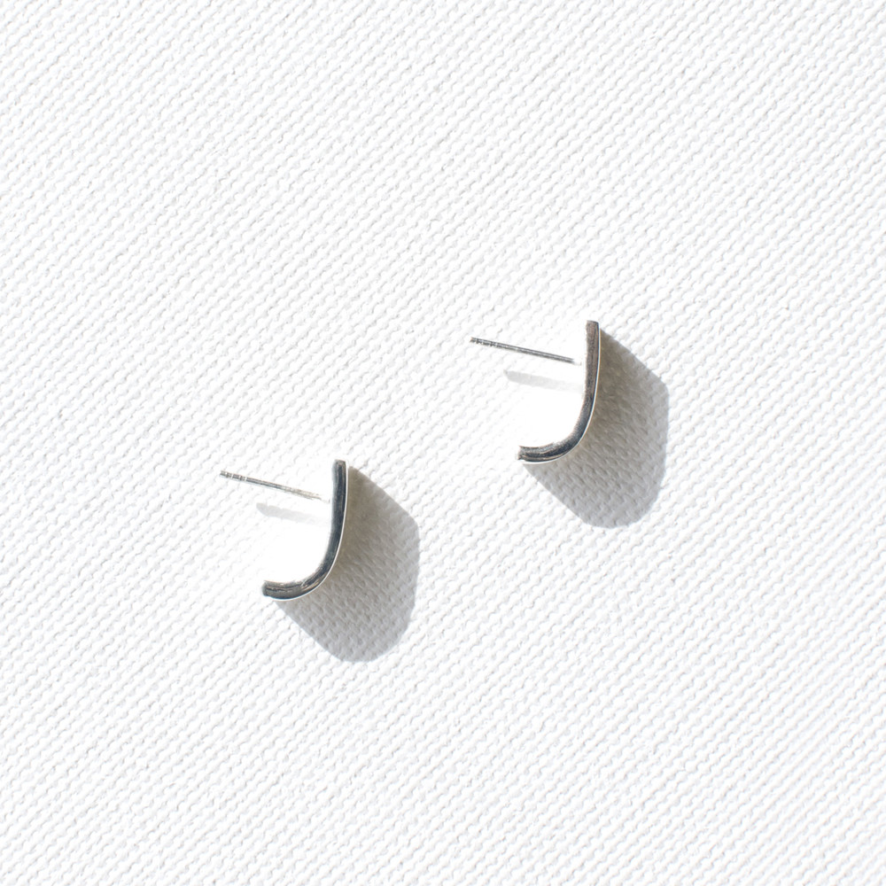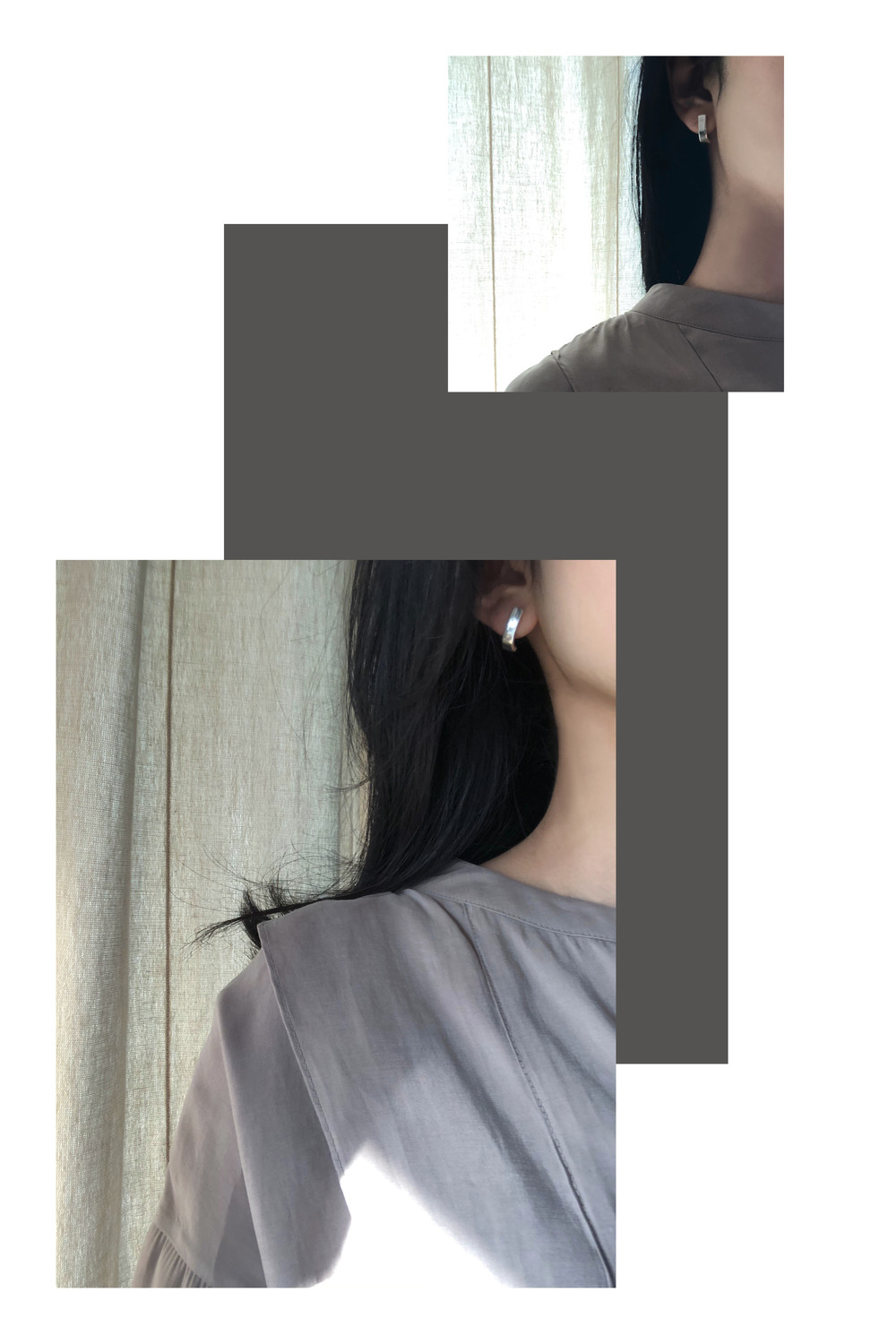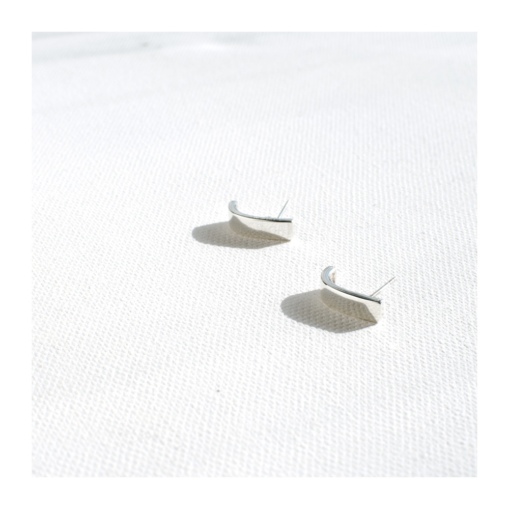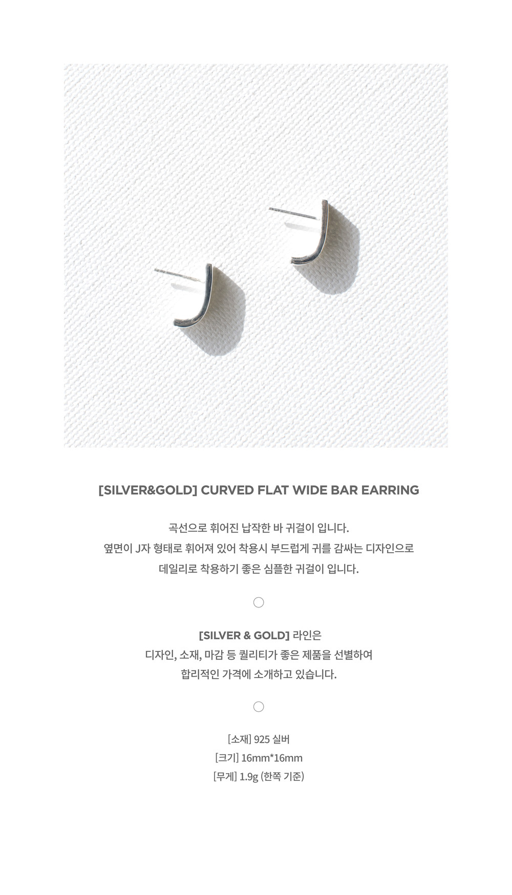 [SILVER & GOLD] CURVED FLAT WIDE BAR EARRING