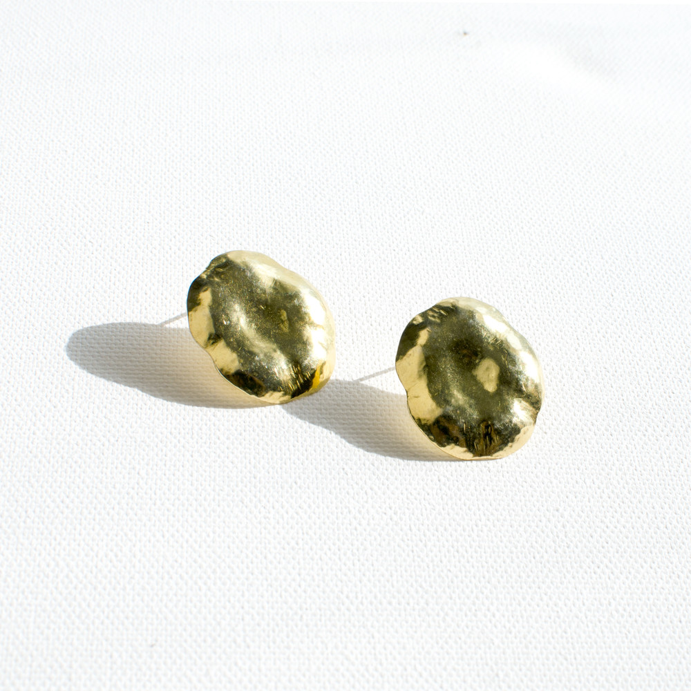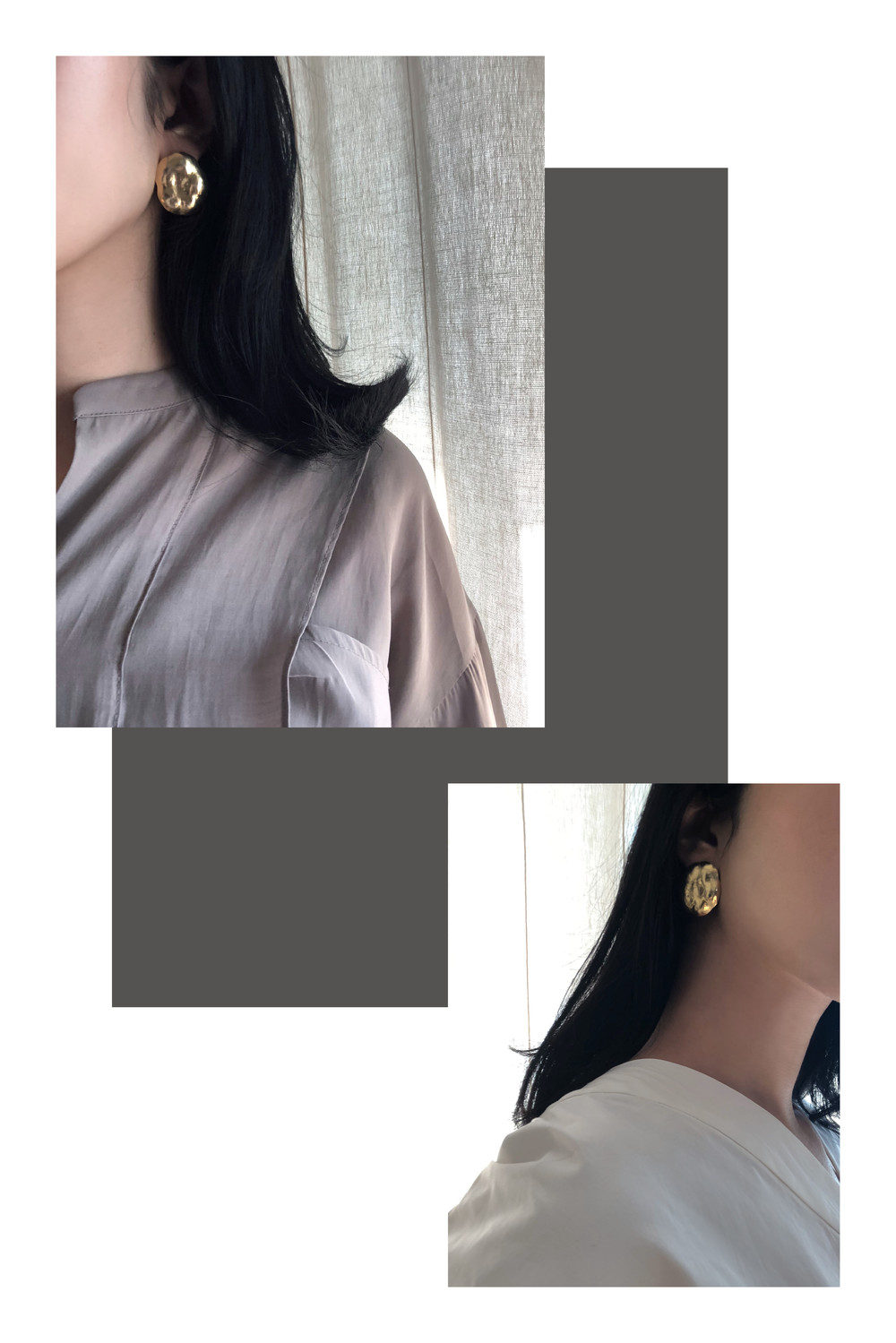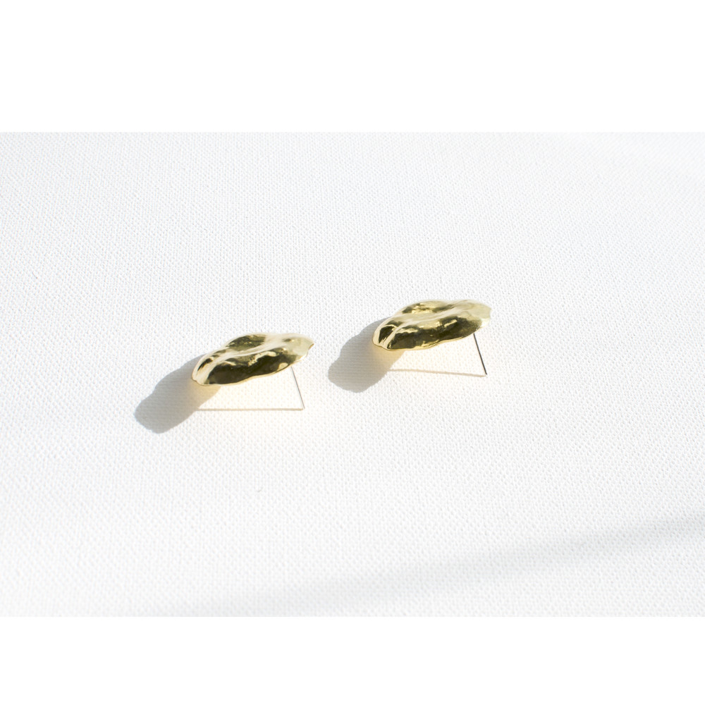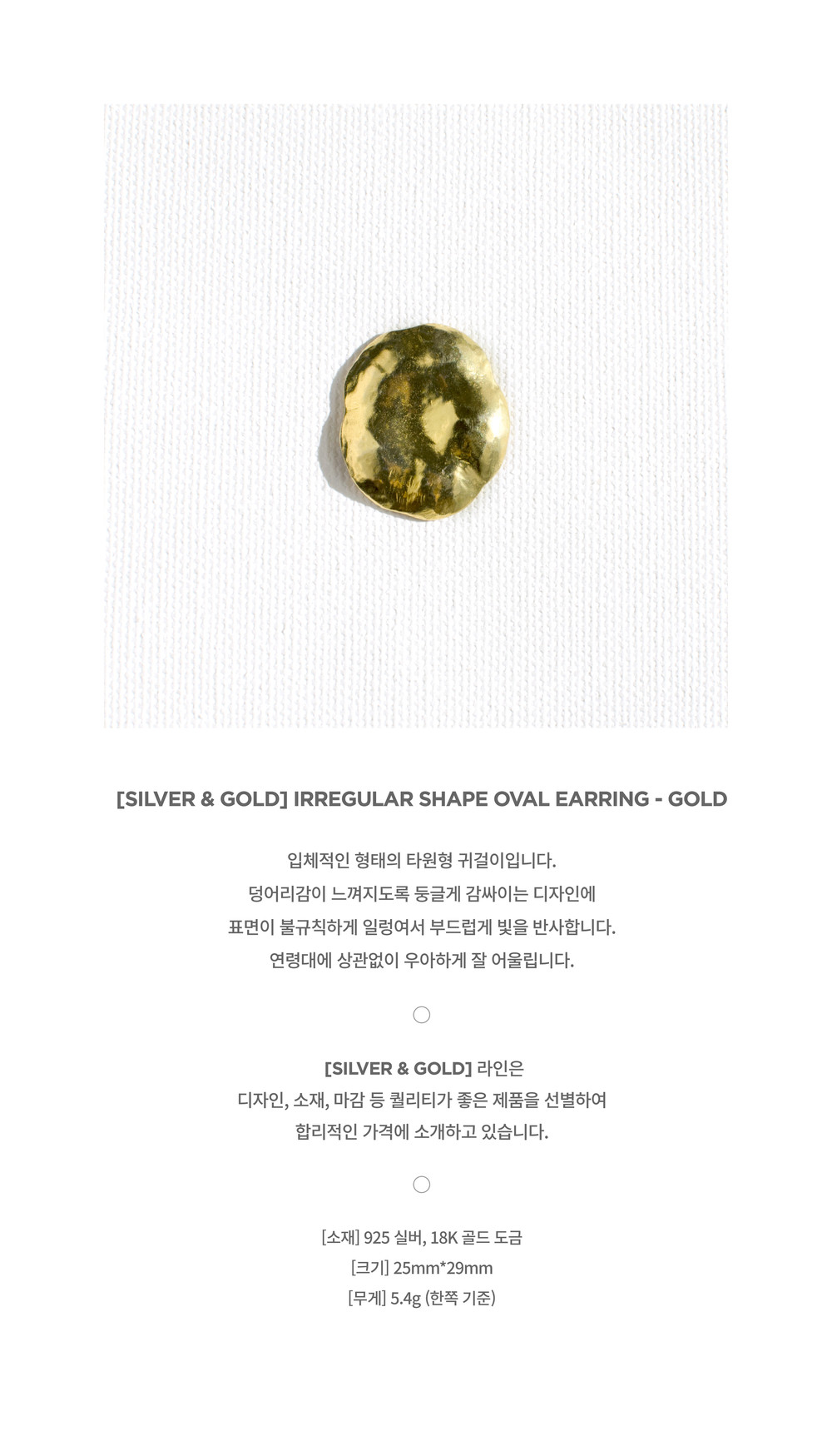 [SILVER & GOLD] IRREGULAR SHAPE OVAL EARRING - GOLD